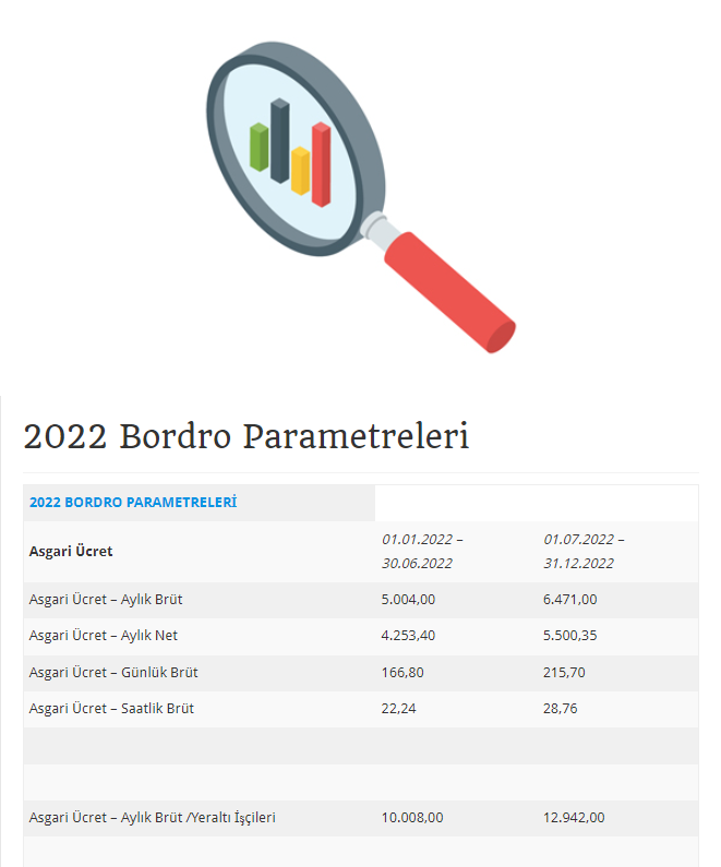 | Asgari Ücret | 01.01.2022 – 30.06.2022 | 01.07.2022 – 31.12.2022 |