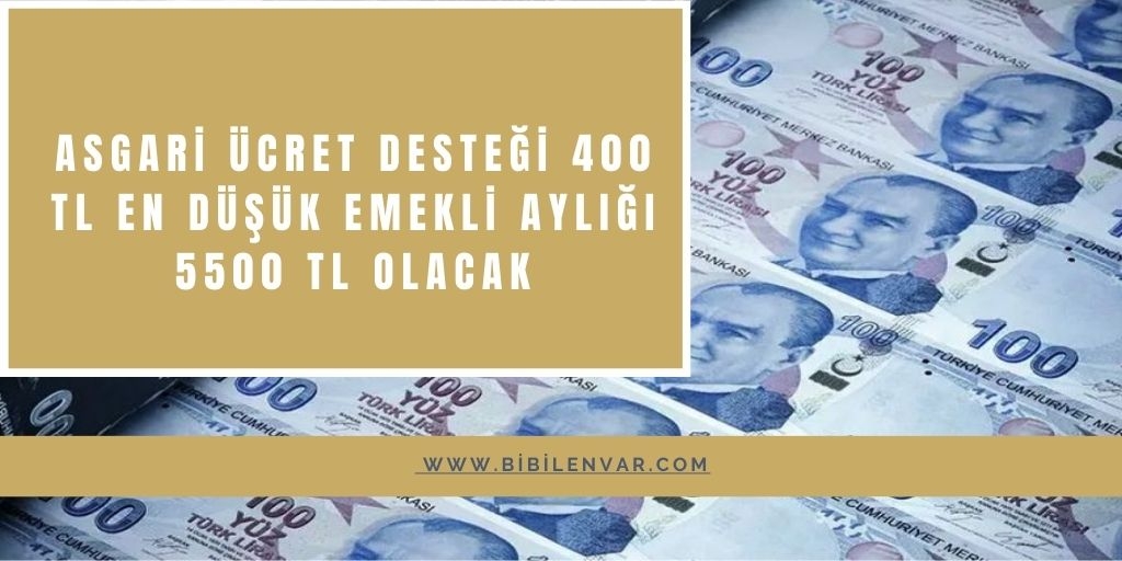 Asgari Ücret Desteği 400 TL En Düşük Emekli Aylığı 5500 TL Olacak